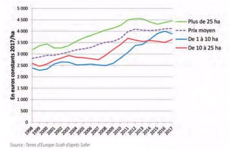 Ce sont les forêts de plus de 50 ha de la moitié Nord de la France qui affichent les prix les plus élevés. Depuis les années 2000, le prix des forêts gagne en moyenne chaque année 4 % en valeur courante, soit 2,2 % en valeur réelle. Le nombre de transactions est en hausse de 1,8 %, notamment grâce à la progression régulière des ventes des petites et moyennes propriétés. Ce n’est pas le cas des propriétés de + de 100 ha. En effet, les propriétaires accordent une plus grande importance à la valeur refuge de leurs forêts, ils préfèrent conserver leurs biens dans l’attente d’un contexte plus favorable. La gestion des grands domaines est plus facile de par l’importance des volumes de bois présent et par la rentabilité régulière.