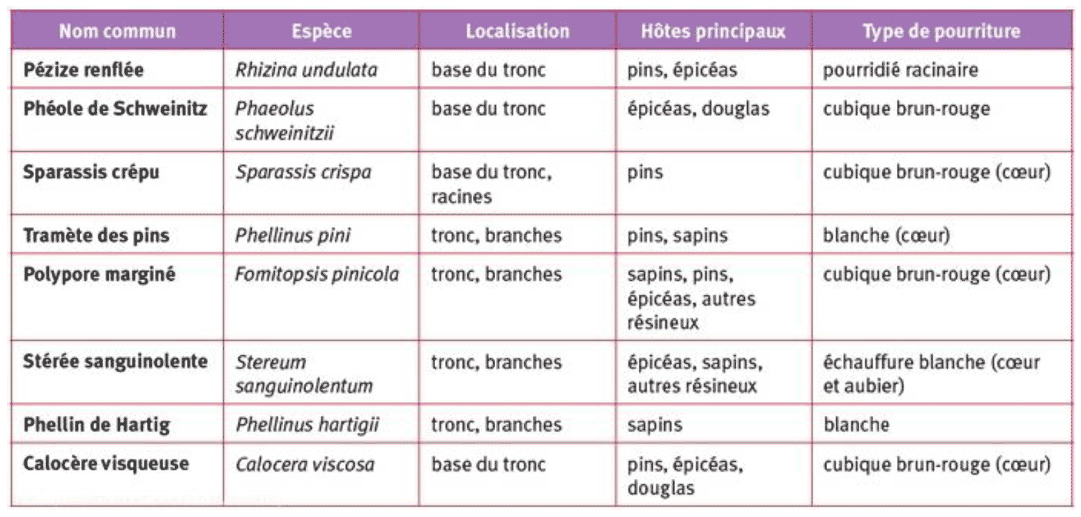 Les essences suivantes sont particulièrement sensibles au fomes :