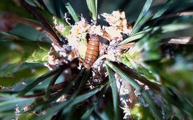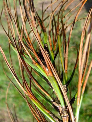 Localisation sur l'hôte : pousses terminales (aiguilles)