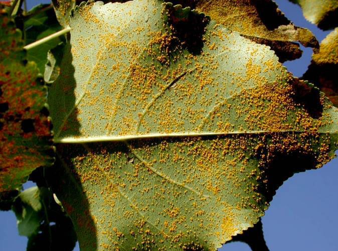 De petites pustules orangées apparaissent au courant de l'été sur la face inférieure des feuilles de peuplier contenant des spores. Celles-ci peuvent rapidement contaminer l'arbre de feuille en feuille.
